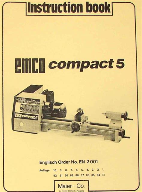 Web emco compact 5 lathe and vertical milling head: The manual is sent by email. Instruction book / parts list.