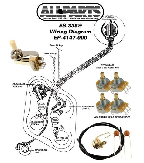 Es335 Wiring Kit. 1x switchcraft right angle toggle 2x cts k split shaft audio pots 2x cts k linear. With genuine paper in oil capacitors, your guitar will have the classic sound of.