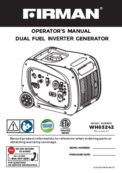 Web Learn How To Safely Operate The Firman Wh03242 Dual Fuel Inverter Portable Generator With This Comprehensive User Manual.