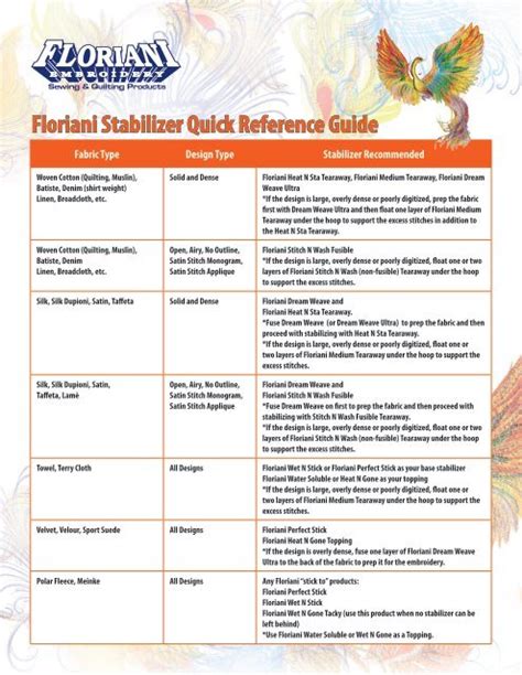Floriani Stabilizer Guide. To view results in your browser, click on the pdf icon for the desired. Create an account or sign in to download this.