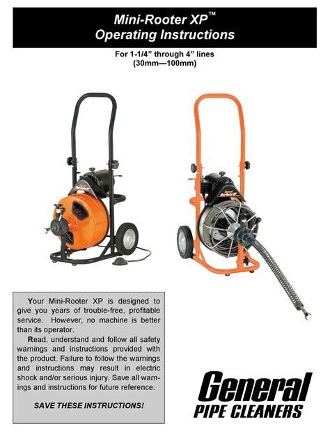 General Mini Rooter Manual. Web from general pipe cleaners! Electric jet for 2” to 4” lines up to 150 ft.